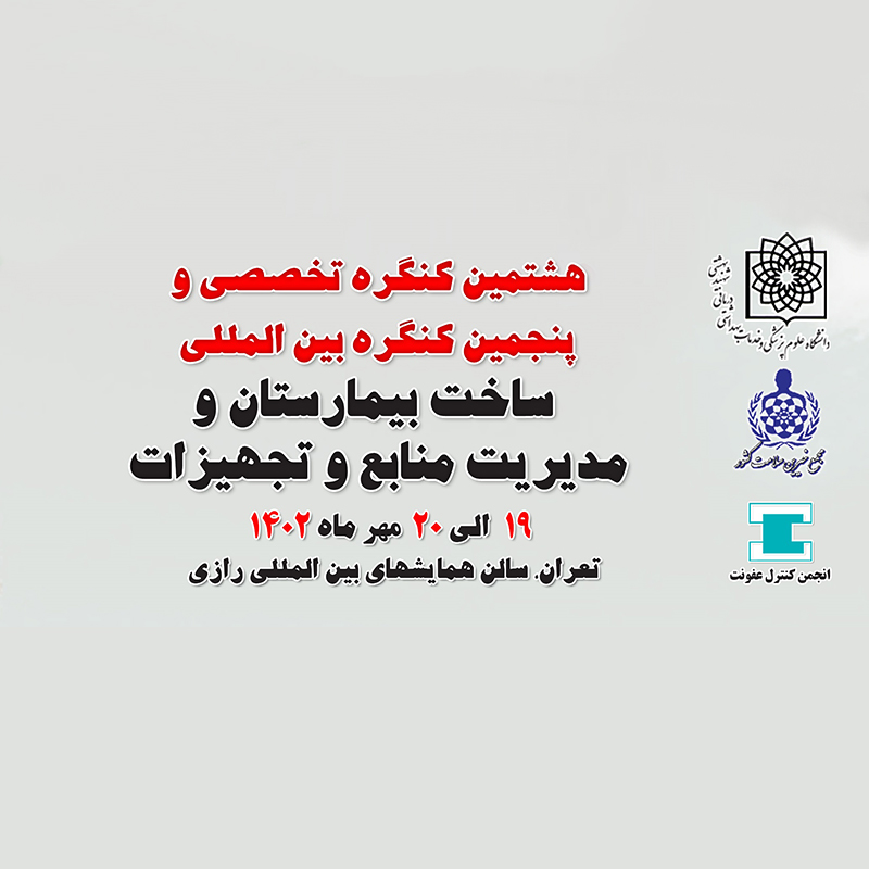 هشتمین کنگره تخصصی وپنجمین کنگره بین المللی ساخت بیمارستان و مدیریت منابع و تجهیزات درتاریخ ١٩ الی ٢٠ مهرماه ١۴٠٢به درمرکز همایشهای بین المللی رازی با وب سایت اختصاصی www.hospitalbuild.ir با پوسترومحورهای پیوست به همت دانشگاه علوم پزشکی شهید بهشتی ، مجمع خیرین سلامت کشور و انجمن کنترل عفونت و بامشارکت و همکاری انجمن متخصصین تجهیزات پزشکی کشور ، در مرکز همایشهای بین المللی رازی تهران برگزارمی شود.
